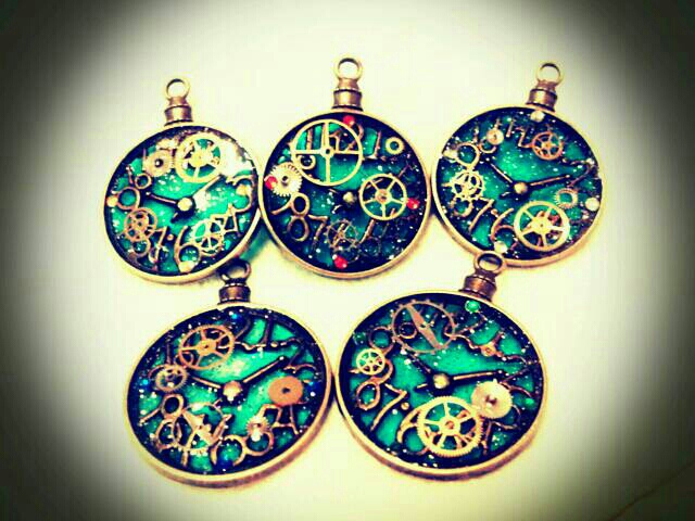 早速、先ほど届いた歯車パーツを使ってチャームを制作しました。